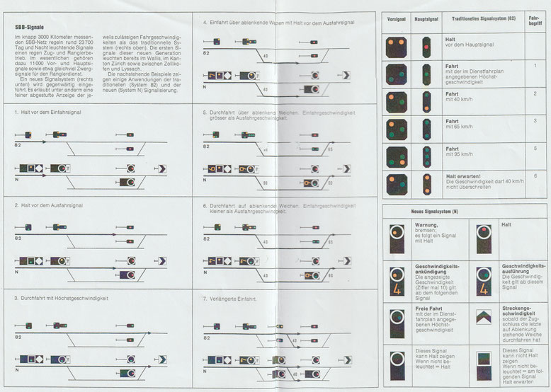 Übersicht der Fahrbegriffe der beiden Signalsystemen. Das tradtionelle Signalssystem wird heute als System L (= Lichtsignal) bezeichnet. Beim neuen System steht das N für Nummernsignale / Numerisch.